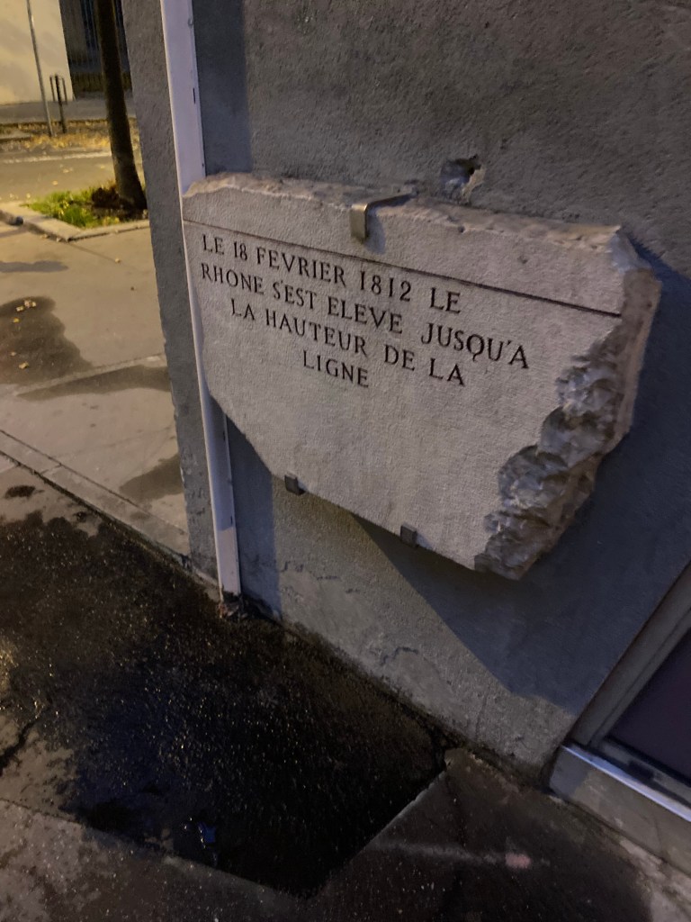 “On the 18th of February, 1812, the Rhône river rose up to the line marked here.” That’s about waist height. Glad I’m on the fifth floor in case that happens again.