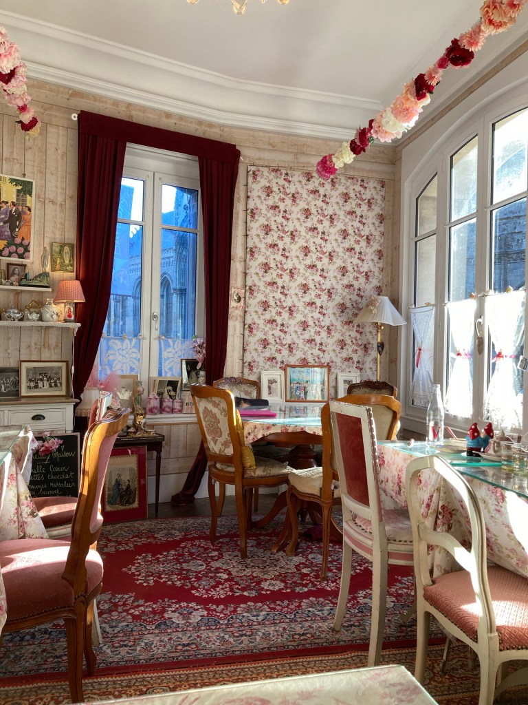 Directly across the narrow street from the cathedral was an adorable pink tea shop. The breakfast price was good, and the atmosphere looked bomb dot com, so I had to try it. In the teeny tearoom with me were some exhausted-looking American women discussing the day’s unresolved travel plans.