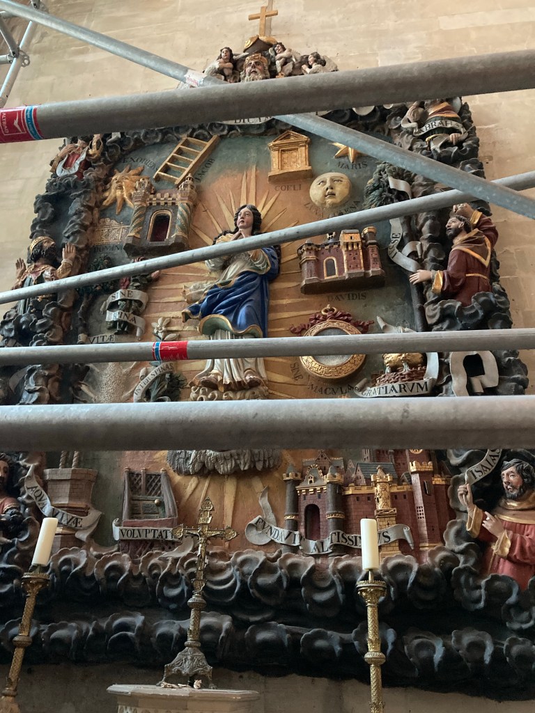I definitely was not supposed to be in this part of the cathedral, due to it being under construction or repairs or somesuch. But this gorgeous wood carving drew me in! So really, it’s Mother Mary’s fault.