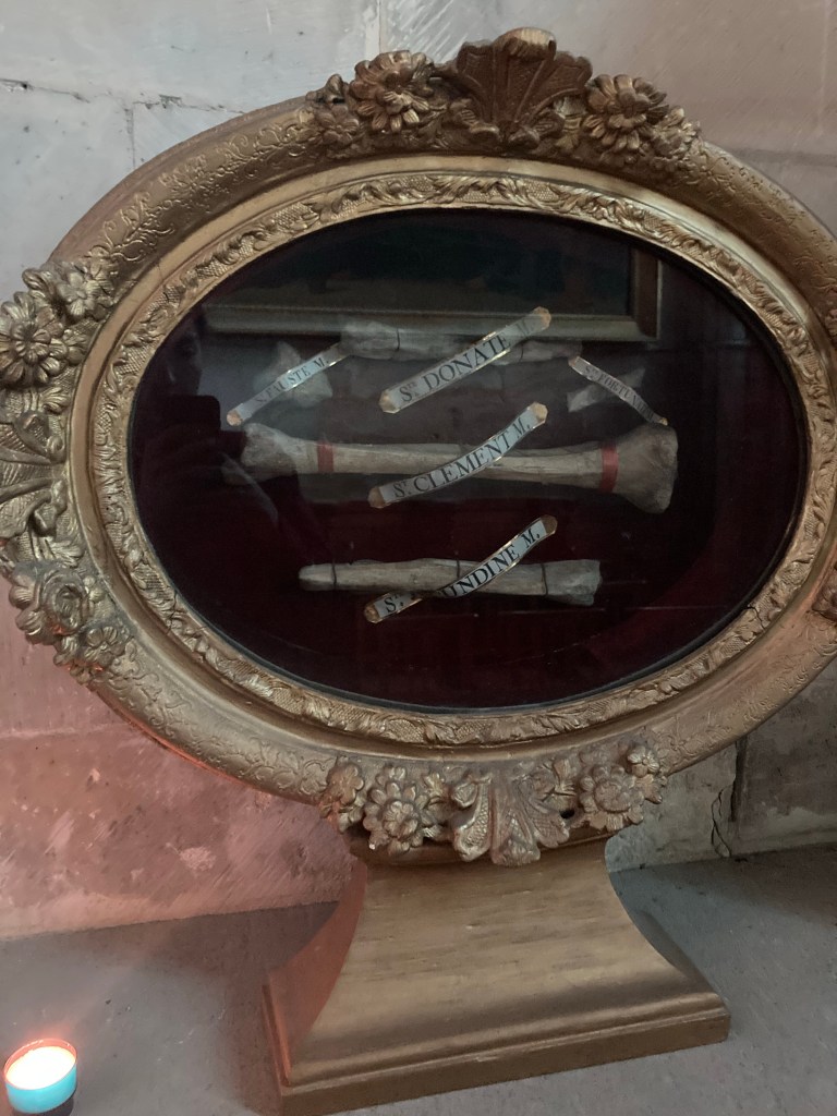 This may seem a little bizarre to any non-Catholics reading. This is called a reliquary, or a special container for artifacts that are believed to have belonged to a saint. Usually, those artifacts are body parts. Check out that big bone in the middle: this cathedral is claiming to have the leg bone of Saint Clement.