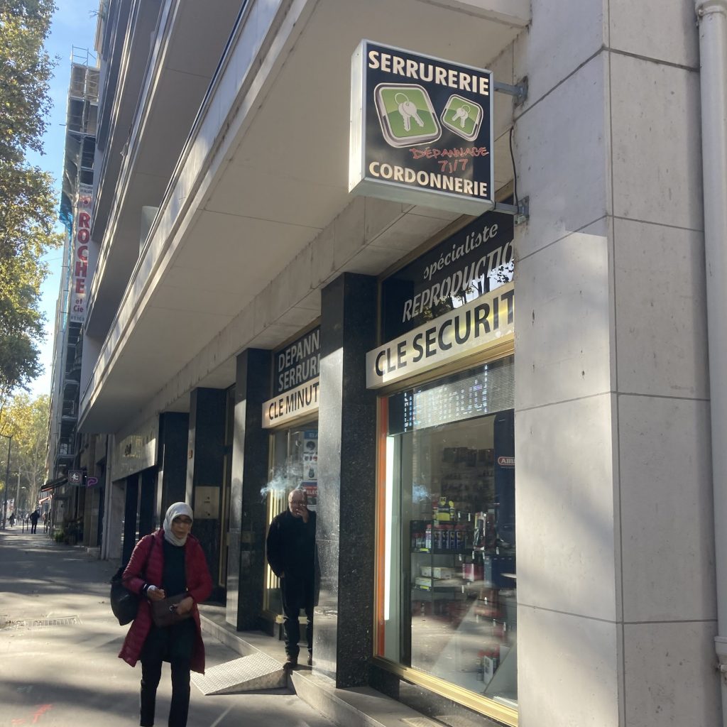 A locksmith and plaquemaker, all in one. The plaques are important for your apartment door and mailbox. They’re pretty cheap and you can get one in a couple of minutes.
