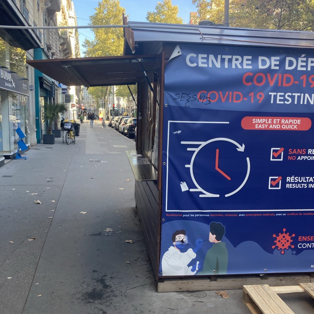A Covid stand. If you want to get tested but you don’t want to go to a doctor, you have to do it at one of these huts.